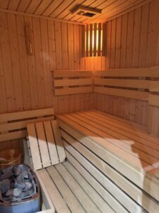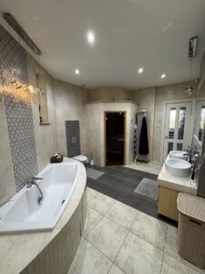 – Łazienka-pokój kąpielowy – z wanną i wspomnianą sauną.