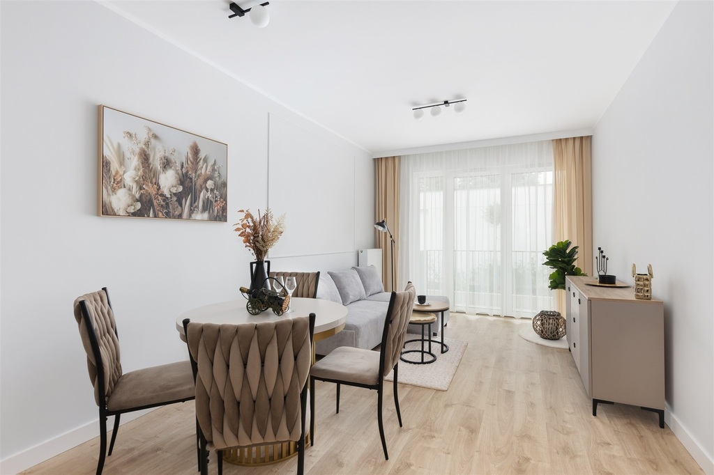 – Mieszkanie wykończone w neutralnych, eleganckich kolorach – gotowe do zamieszkania