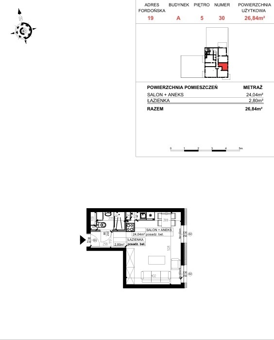 Oferujemy na sprzedaż mieszkanie o powierzchni 26,84 m2