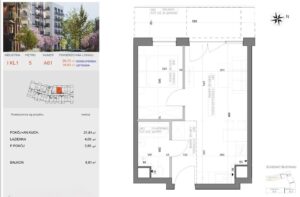 – pokój dzienny z aneksem kuchennym który otwiera się na światło dnia i prowadzi na balkon – idealny na poranną kawę lub wieczorny odpoczynek.