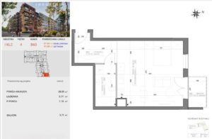 – pokój dzienny z aneksem kuchennym który otwiera się na światło dnia i prowadzi na balkon – idealny na poranną kawę lub wieczorny odpoczynek.
