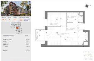 – pokój dzienny z aneksem kuchennym który otwiera się na światło dnia i prowadzi na balkon – idealny na poranną kawę lub wieczorny odpoczynek.