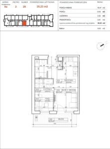 Powierzchnia użytkowa o metrażu 35,23 m² obejmuje: