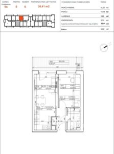 Powierzchnia użytkowa o metrażu 36,41 m² obejmuje: