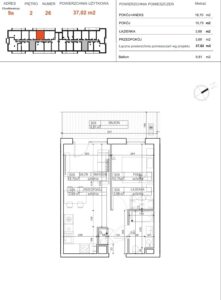 Powierzchnia użytkowa o metrażu 37,02 m² obejmuje: