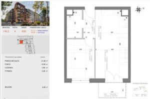 – pokój dzienny z aneksem kuchennym który otwiera się na światło dnia i prowadzi na balkon – idealny na poranną kawę lub wieczorny odpoczynek.