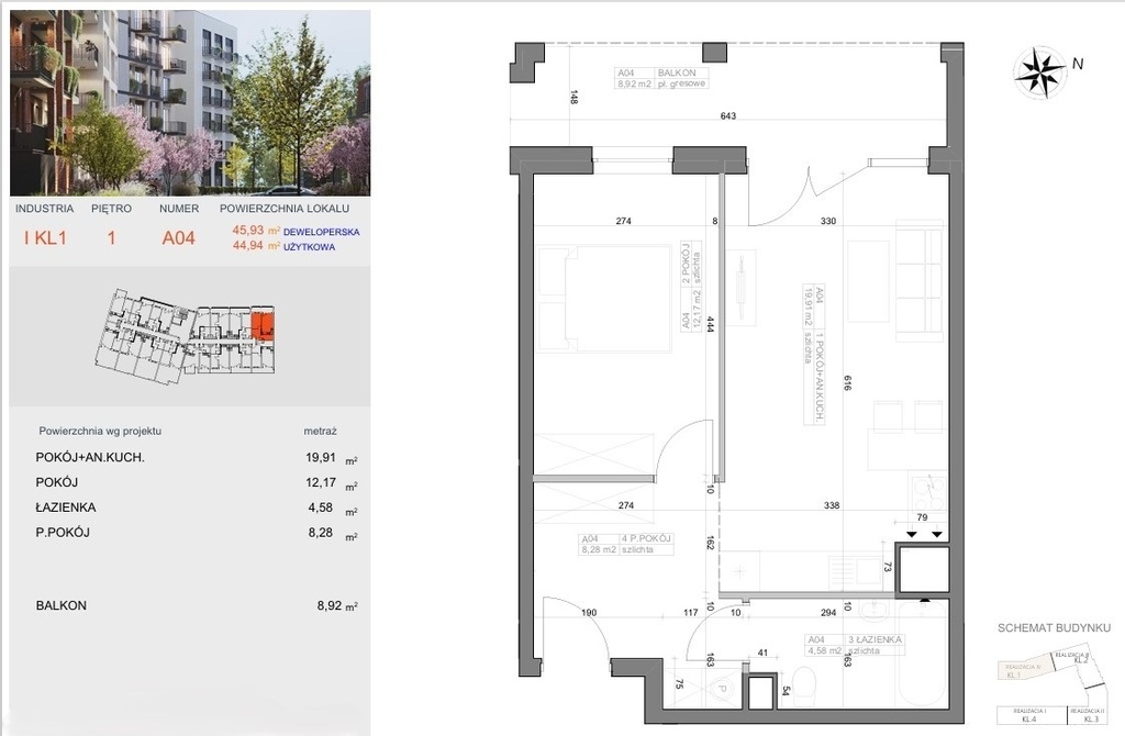 Mieszkanie A04 to esencja nowoczesnego projektowania – harmonijne proporcje, logiczny układ, światło grające po ścianach. Tutaj prostota ma wymiar elegancji, a funkcjonalność staje się stylem życia. Zaprojektowane zgodnie z normą PN-ISO 9836:2022-07, wykończone w standardzie deweloperskim, z możliwością indywidualnej aranżacji – gotowe, by stało się Twoją własną historią.