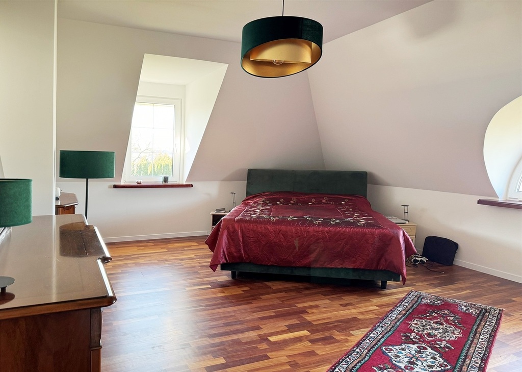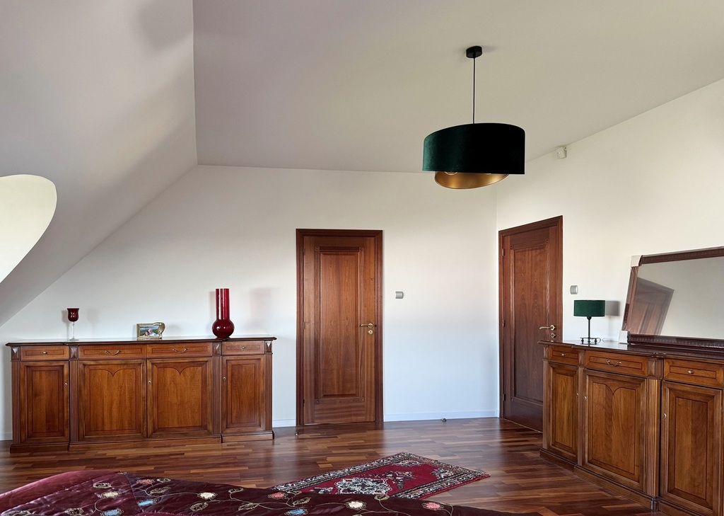 – Sypialnia główna o ekspozycji południowo-zachodniej z garderobą i wbudowanym sejfem