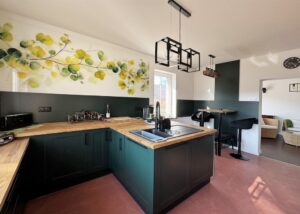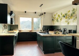 z wysokiej jakości materiałów i podświetlanymi szafkami o powierzchni 20,8 m2