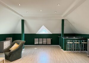 – Pokój/siłownia z balkonem o ekspozycji północnej łączący z dużym pokojem rekreacyjny nad garażem