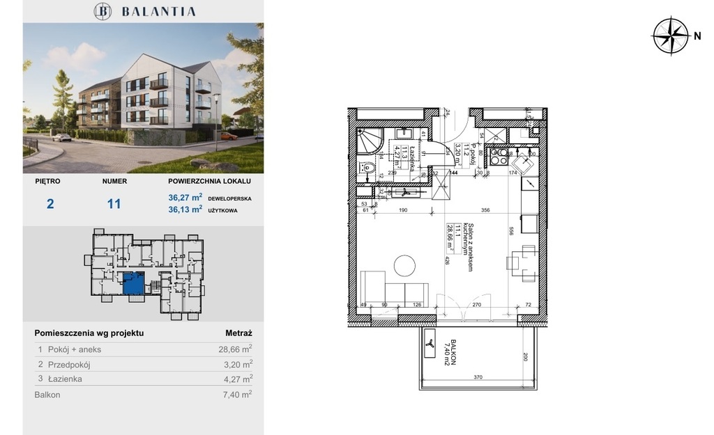 – balkon o powierzchni 7,40 m2