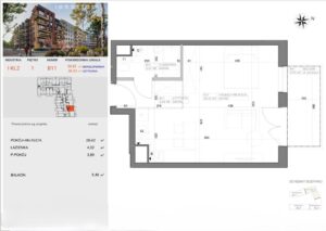 – pokój dzienny z aneksem kuchennym który otwiera się na światło dnia i prowadzi na balkon – idealny na poranną kawę lub wieczorny odpoczynek.