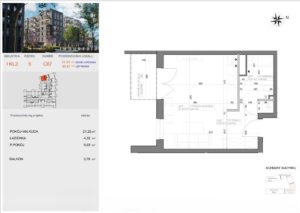 – pokój dzienny z aneksem kuchennym który otwiera się na światło dnia i prowadzi na balkon – idealny na poranną kawę lub wieczorny odpoczynek.