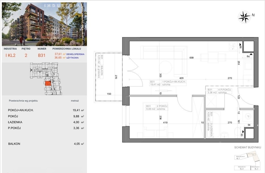 Mieszkanie B31 to esencja nowoczesnego projektowania – harmonijne proporcje, logiczny układ, światło grające po ścianach. Tutaj prostota ma wymiar elegancji, a funkcjonalność staje się stylem życia. Zaprojektowane zgodnie z normą PN-ISO 9836:2022-07, wykończone w standardzie deweloperskim, z możliwością indywidualnej aranżacji – gotowe, by stało się Twoją własną historią.