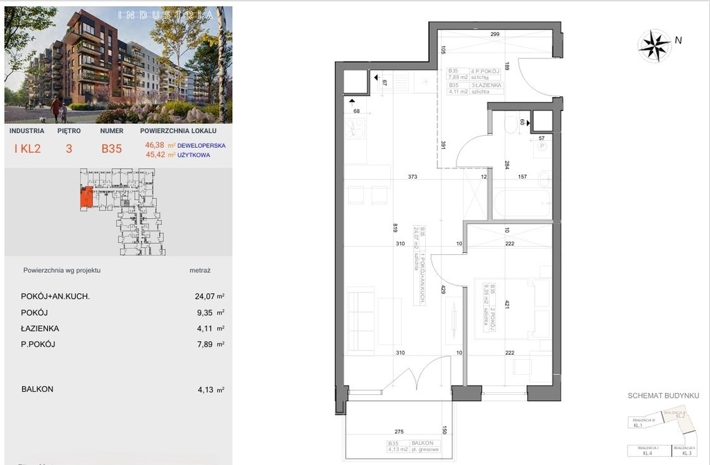 Mieszkanie B35 to esencja nowoczesnego projektowania – harmonijne proporcje, logiczny układ, światło grające po ścianach. Tutaj prostota ma wymiar elegancji, a funkcjonalność staje się stylem życia. Zaprojektowane zgodnie z normą PN-ISO 9836:2022-07, wykończone w standardzie deweloperskim, z możliwością indywidualnej aranżacji – gotowe, by stało się Twoją własną historią.