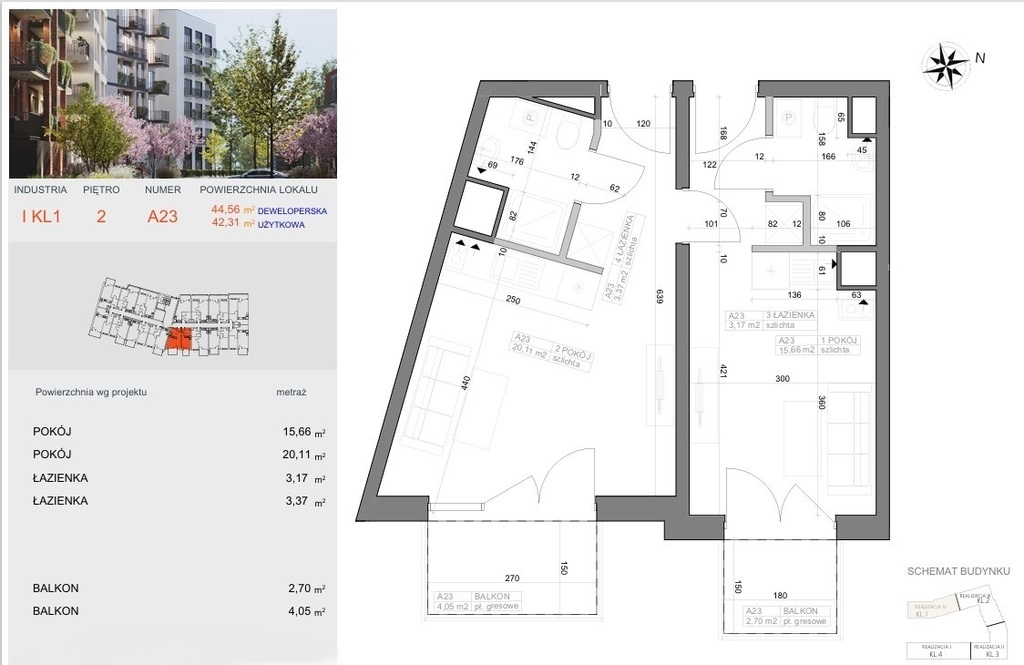 Mieszkanie A23 to esencja nowoczesnego projektowania – harmonijne proporcje, logiczny układ, światło grające po ścianach. Tutaj prostota ma wymiar elegancji, a funkcjonalność staje się stylem życia. Zaprojektowane zgodnie z normą PN-ISO 9836:2022-07, wykończone w standardzie deweloperskim, z możliwością indywidualnej aranżacji – gotowe, by stało się Twoją własną historią.