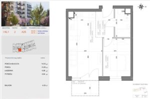 – pokój dzienny z aneksem kuchennym który otwiera się na światło dnia i prowadzi na balkon – idealny na poranną kawę lub wieczorny odpoczynek.