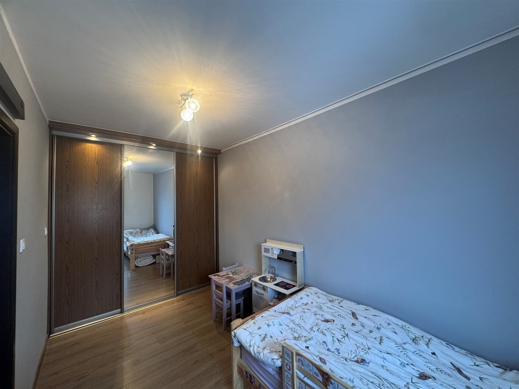 Pierwszy pokój pełni funkcję dziennej przestrzeni — idealnej na salon z częścią wypoczynkową. Drugi pokój doskonale sprawdzi się jako sypialnia, pokój dziecięcy lub gabinet do pracy zdalnej.