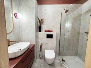 druga, elegancka łazienka w strefie wypoczynku o powierzchni 3,92 m2,
