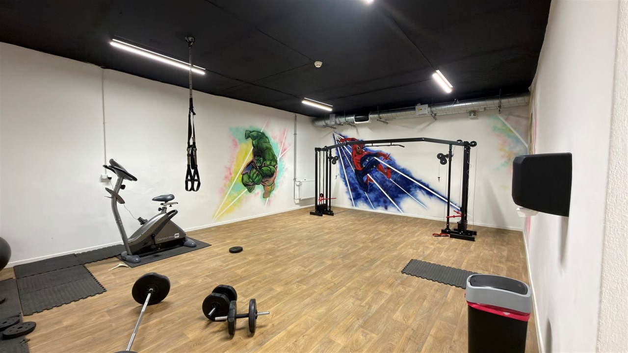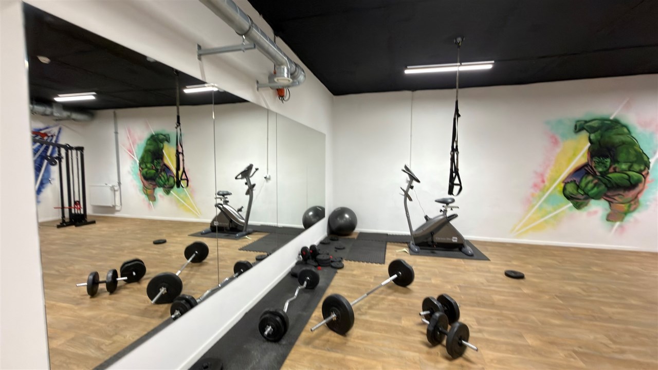 Lokal znajduje się na poziomie -1, tuż obok ogólnodostępnej siłowni należącej do obiektu.