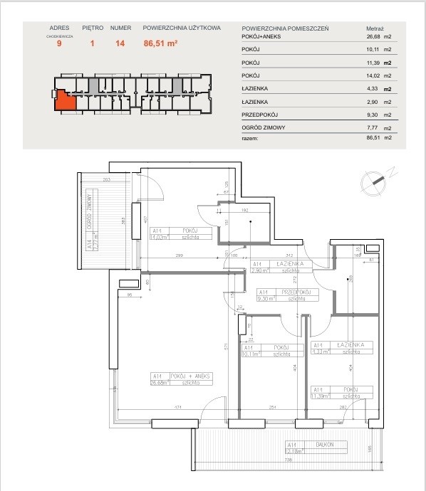 | Powierzchnia użytkowa [m2] | 86,51 m² |