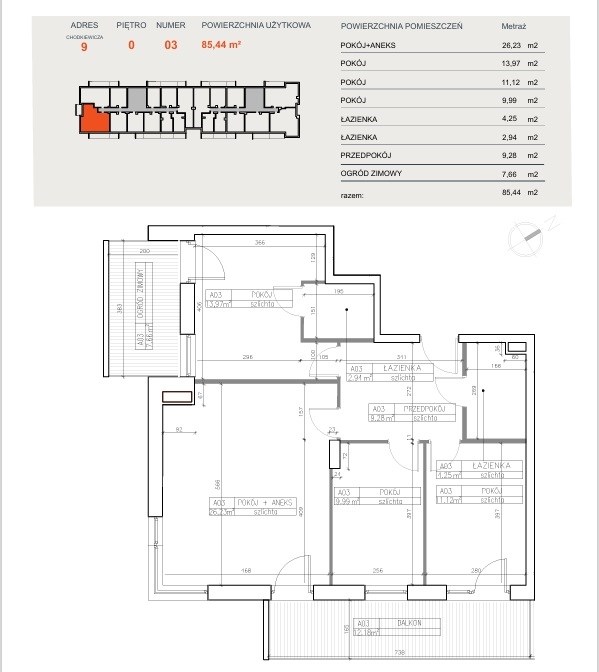 | Powierzchnia użytkowa [m2] | 85,44 m² |