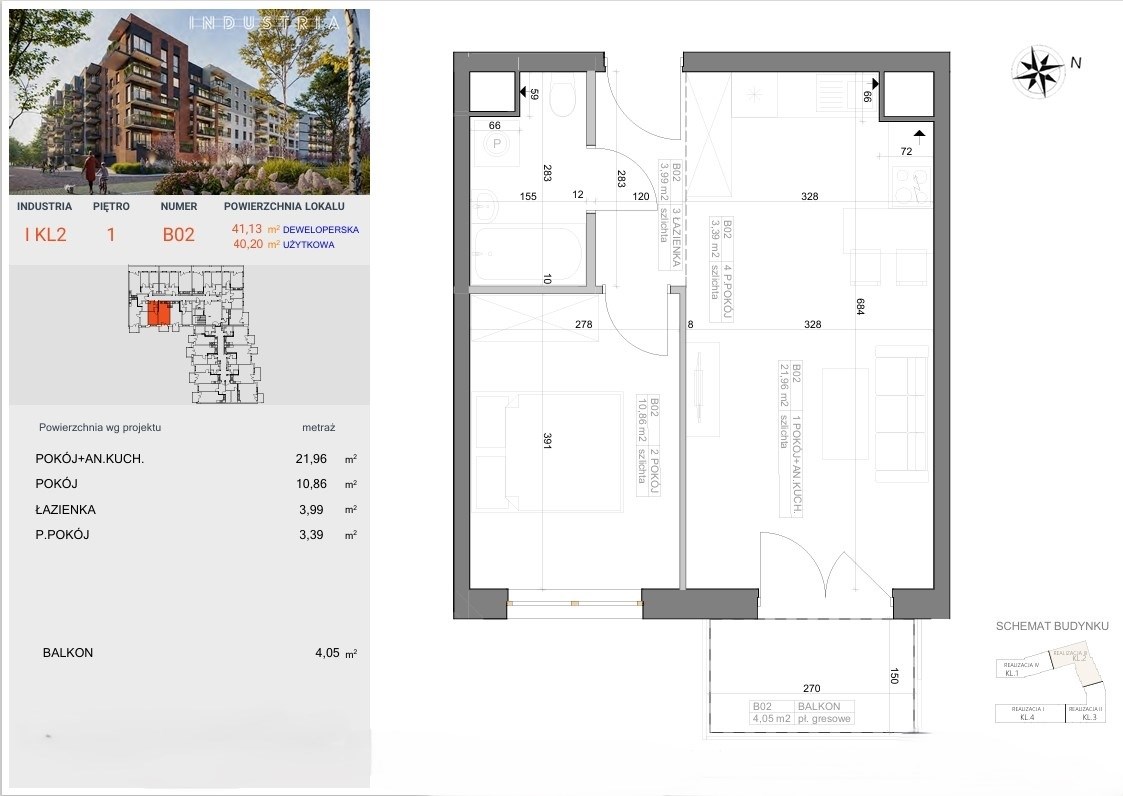 Mieszkanie B02 to esencja nowoczesnego projektowania – harmonijne proporcje, logiczny układ, światło grające po ścianach. Tutaj prostota ma wymiar elegancji, a funkcjonalność staje się stylem życia. Zaprojektowane zgodnie z normą PN-ISO 9836:2022-07, wykończone w standardzie deweloperskim, z możliwością indywidualnej aranżacji – gotowe, by stało się Twoją własną historią.