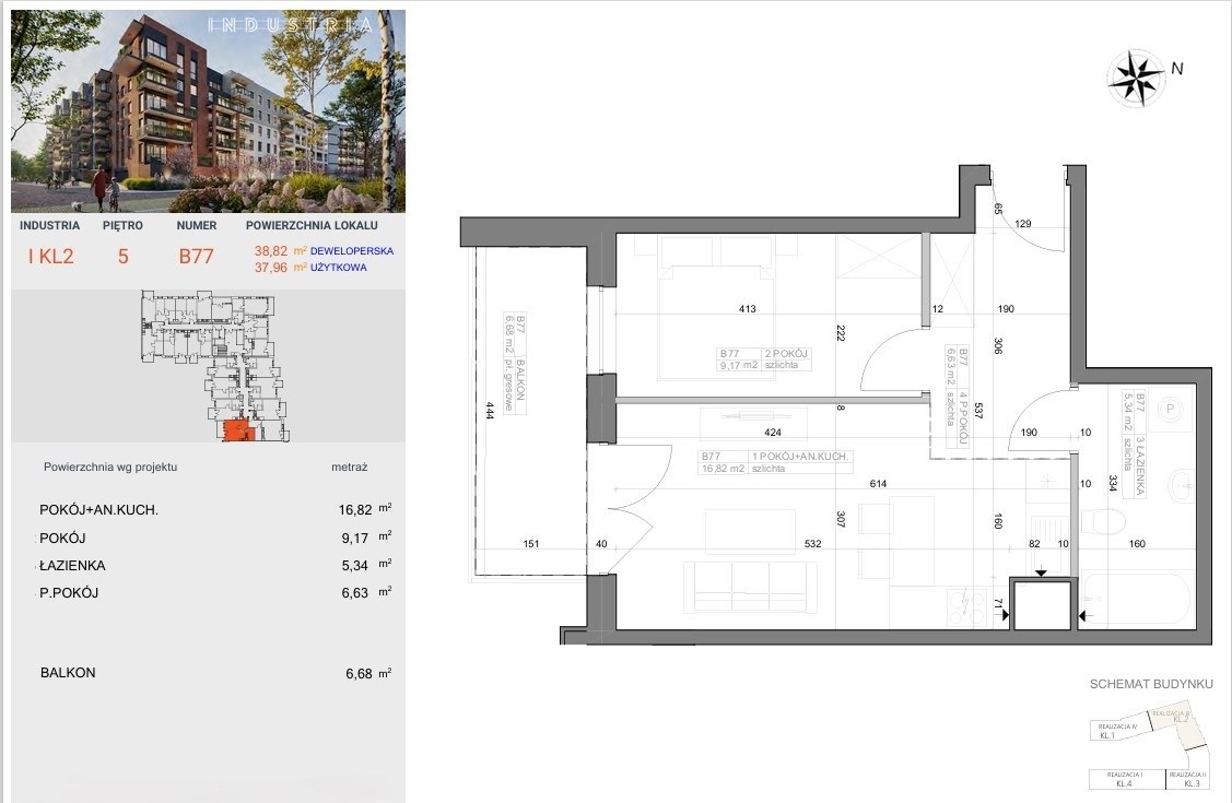 Mieszkanie B77 to esencja nowoczesnego projektowania – harmonijne proporcje, logiczny układ, światło grające po ścianach. Tutaj prostota ma wymiar elegancji, a funkcjonalność staje się stylem życia. Zaprojektowane zgodnie z normą PN-ISO 9836:2022-07, wykończone w standardzie deweloperskim, z możliwością indywidualnej aranżacji – gotowe, by stało się Twoją własną historią.