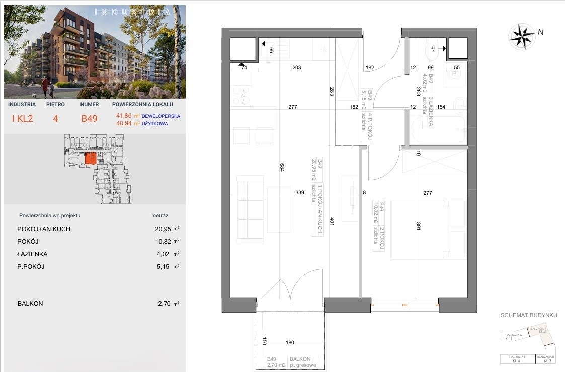 Mieszkanie B49 to esencja nowoczesnego projektowania – harmonijne proporcje, logiczny układ, światło grające po ścianach. Tutaj prostota ma wymiar elegancji, a funkcjonalność staje się stylem życia. Zaprojektowane zgodnie z normą PN-ISO 9836:2022-07, wykończone w standardzie deweloperskim, z możliwością indywidualnej aranżacji – gotowe, by stało się Twoją własną historią.