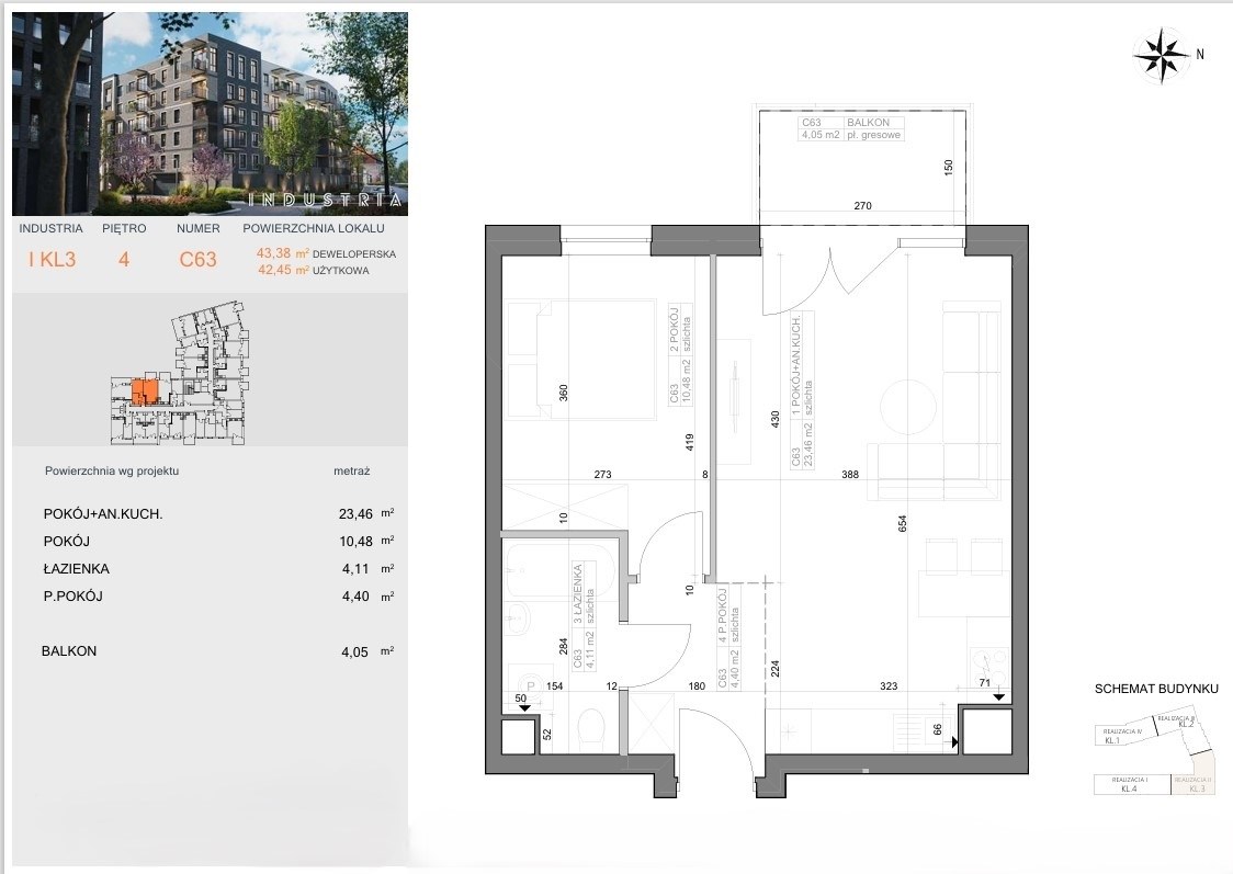 | Powierzchnia balkonów/tarasów | 4,05 m² |