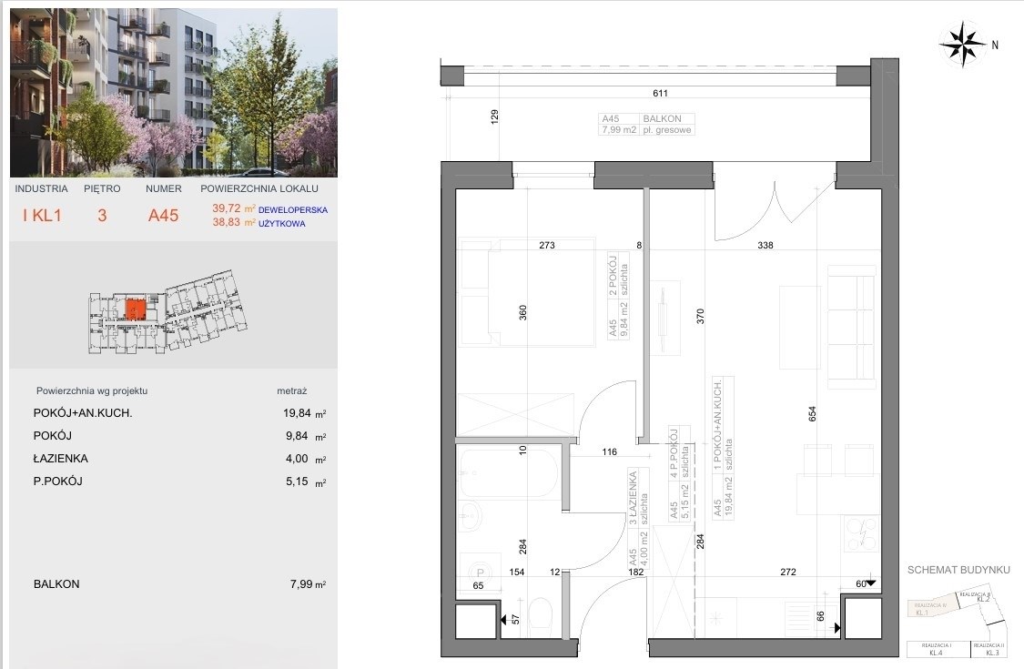 Mieszkanie A45 to esencja nowoczesnego projektowania – harmonijne proporcje, logiczny układ, światło grające po ścianach. Tutaj prostota ma wymiar elegancji, a funkcjonalność staje się stylem życia. Zaprojektowane zgodnie z normą PN-ISO 9836:2022-07, wykończone w standardzie deweloperskim, z możliwością indywidualnej aranżacji – gotowe, by stało się Twoją własną historią.