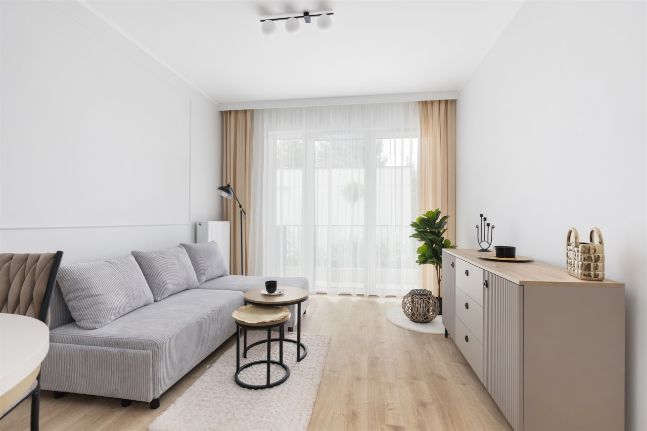 - Mieszkanie wykończone w neutralnych, eleganckich kolorach – gotowe do zamieszkania