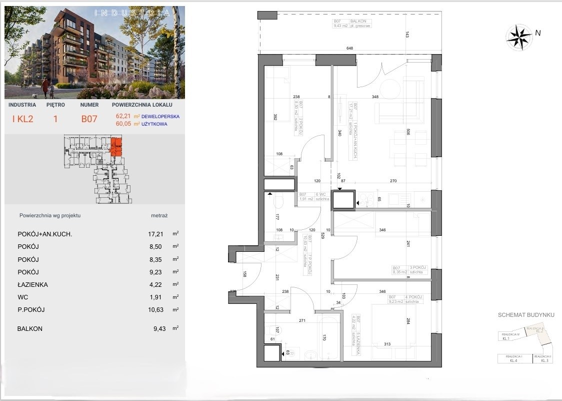 | Powierzchnia balkonów/tarasów | 9,43 m² |