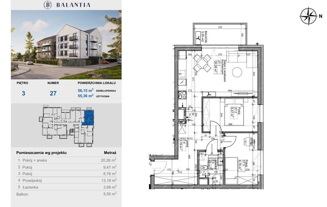 Powierzchnia użytkowa [m2] | 55,36 m² |