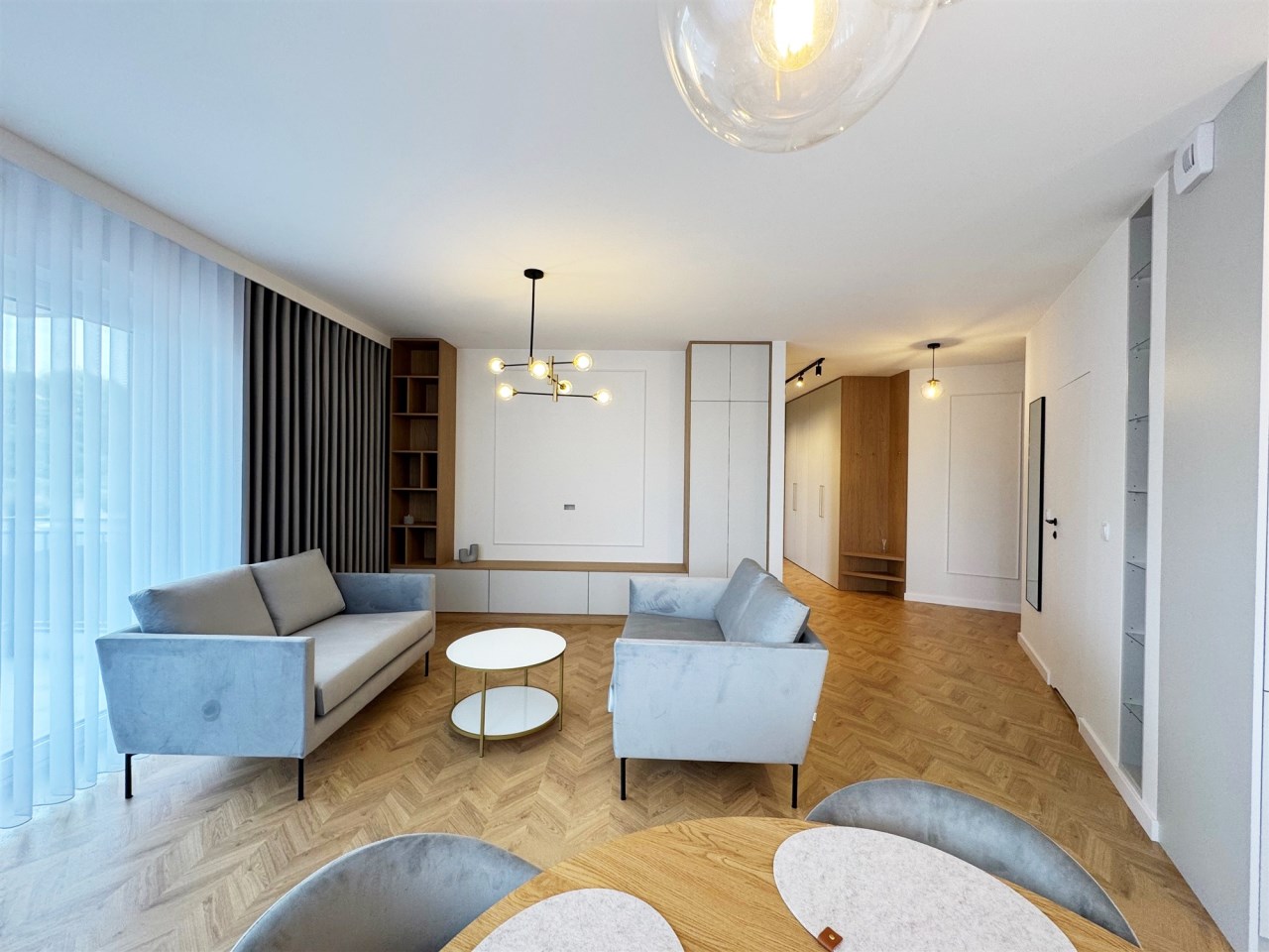 Dzięki panoramicznym oknom, wnętrze jest dobrze doświetlone i przestronne. W pełni wykończony balkon 7,6 m2 pozwala na wykorzystanie tej powierzchni jako strefy relaksu.