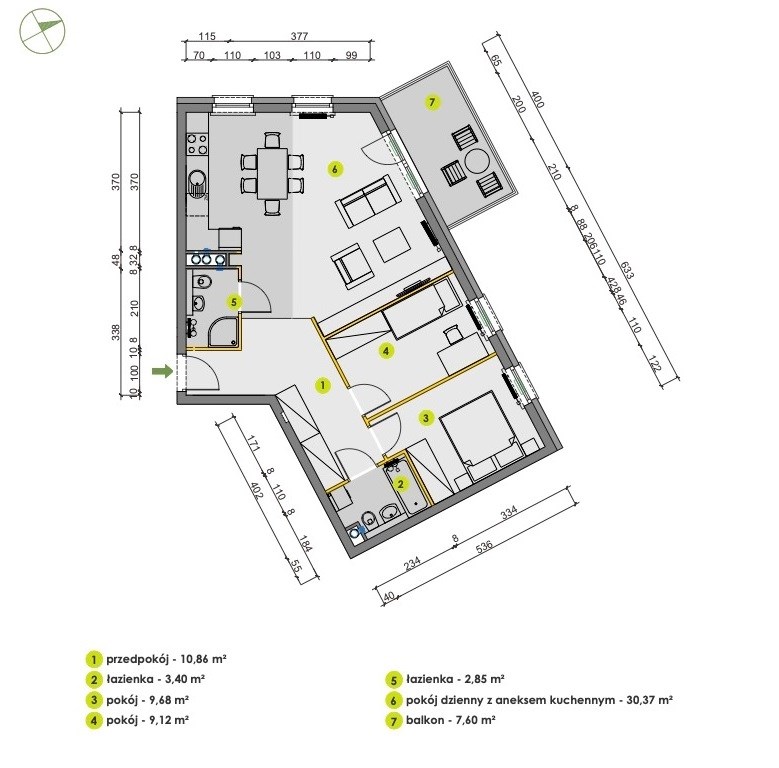 | Rodzaj kuchni | aneks kuchenny - połączony z jadalnią |