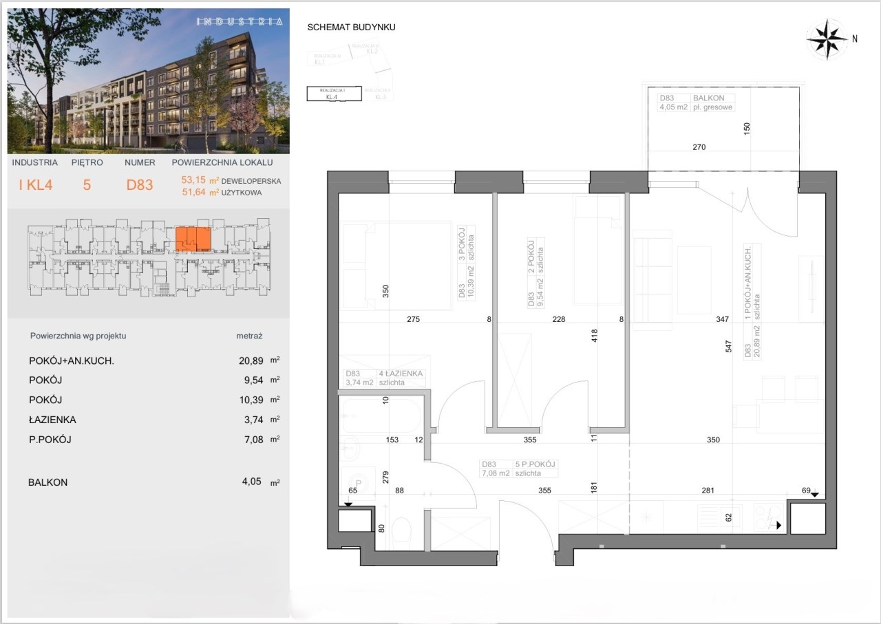 | Powierzchnia balkonów/tarasów | 4,05 m² |